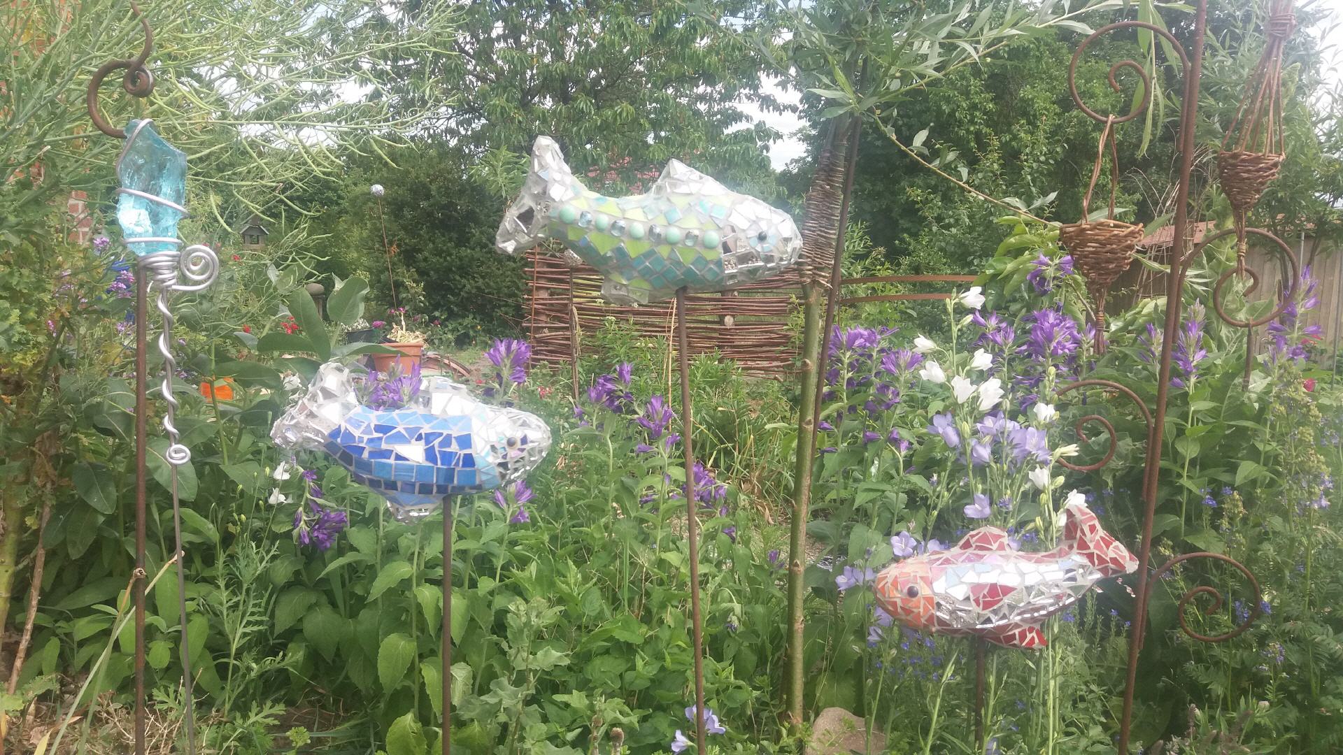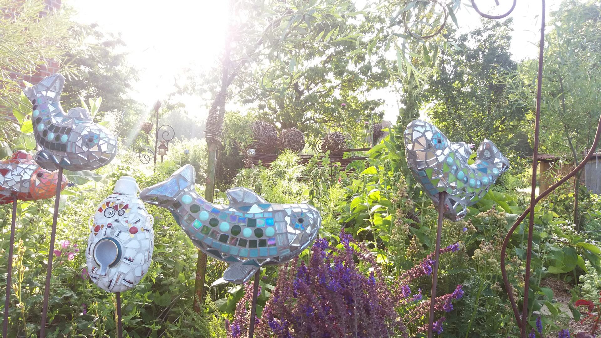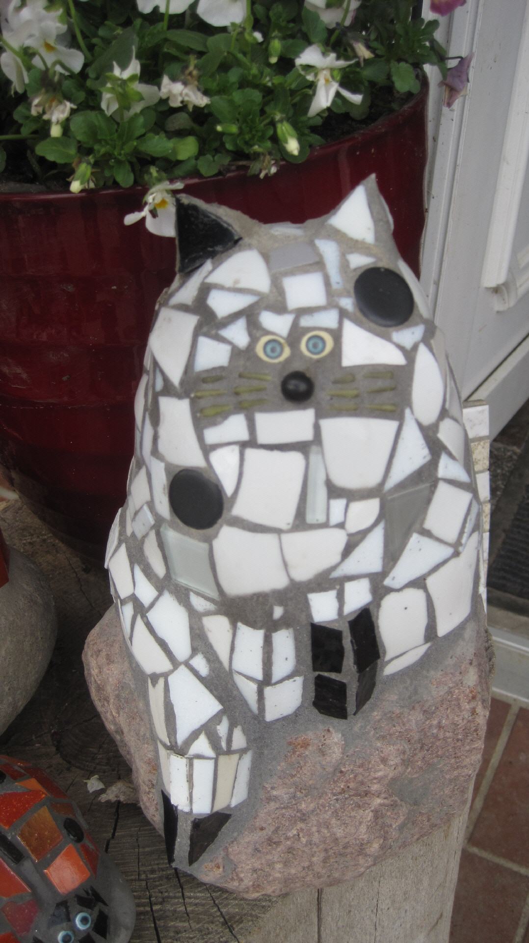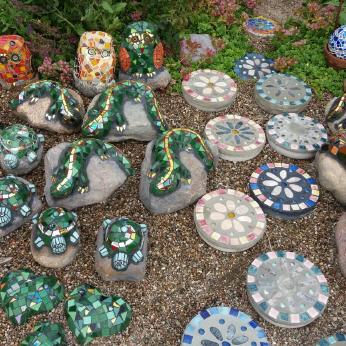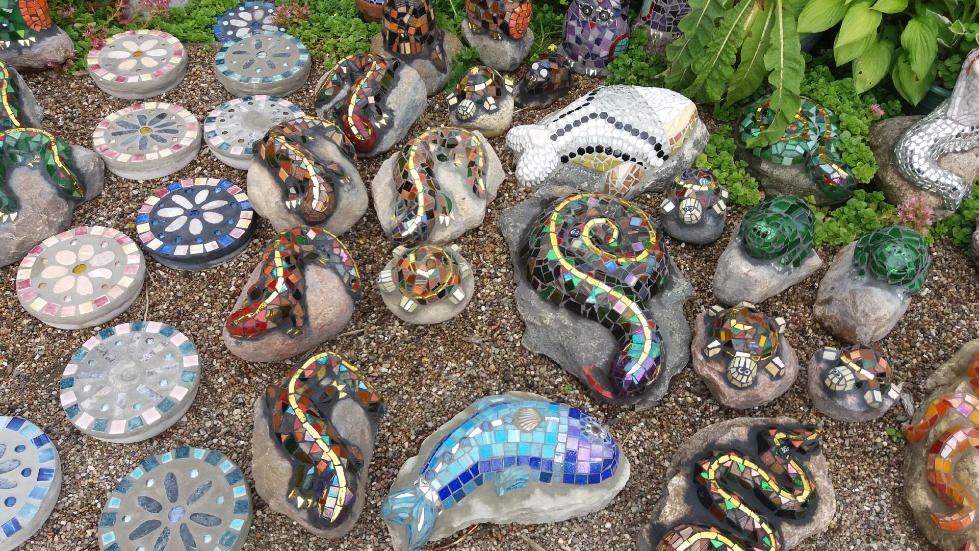 Bei mir können Sie individuelle frostfeste Mosaikobjekte für Haus und Garten käuflich erwerben, einen kleinen Eindruck davon vermitteln die Fotos auf dieser Seite. Die Preise variieren je nach Zeitaufwand und Material. Bei Interesse besuchen Sie mich zu Hause (nach vorheriger telefonischer Terminabsprache).
