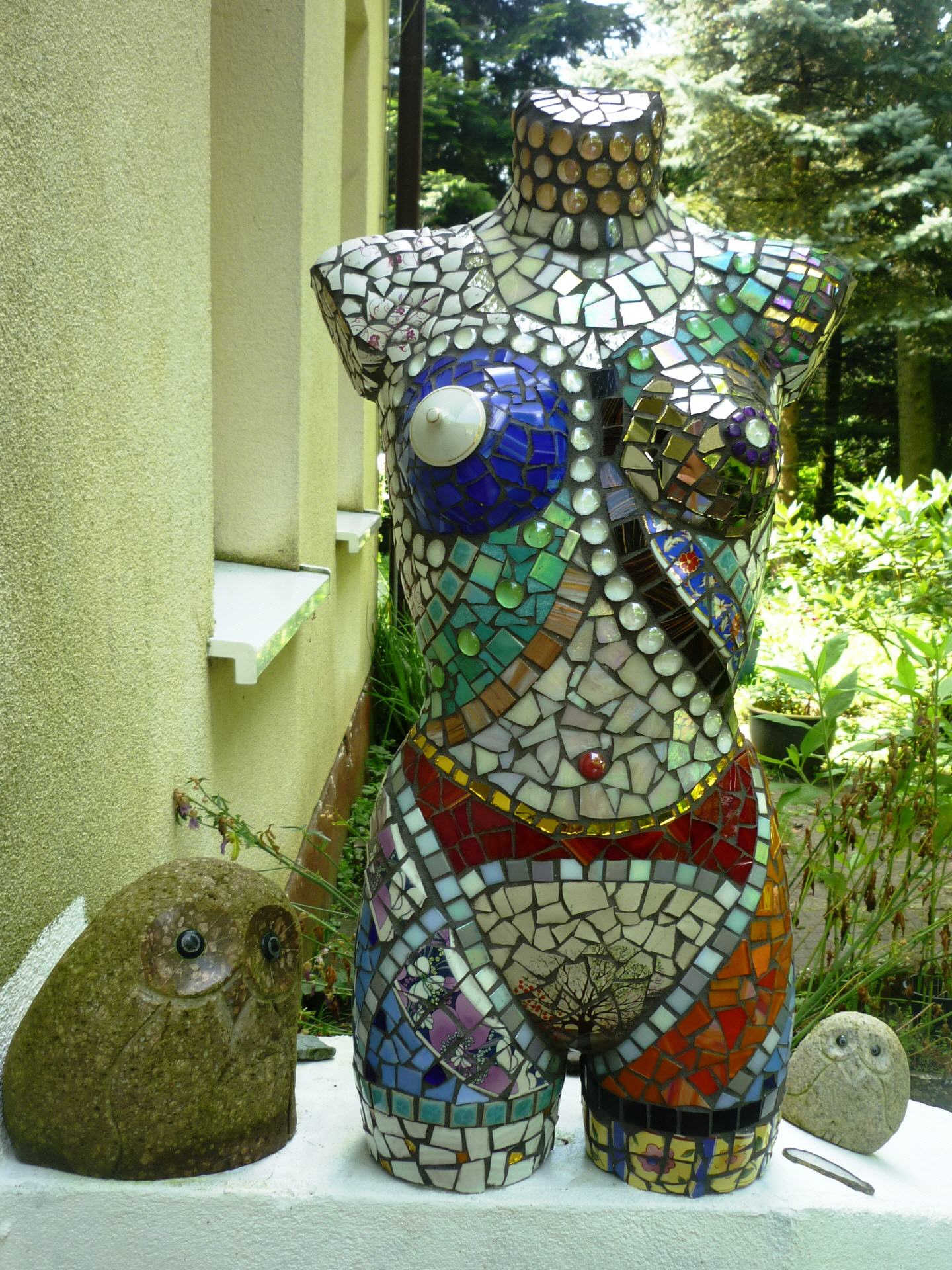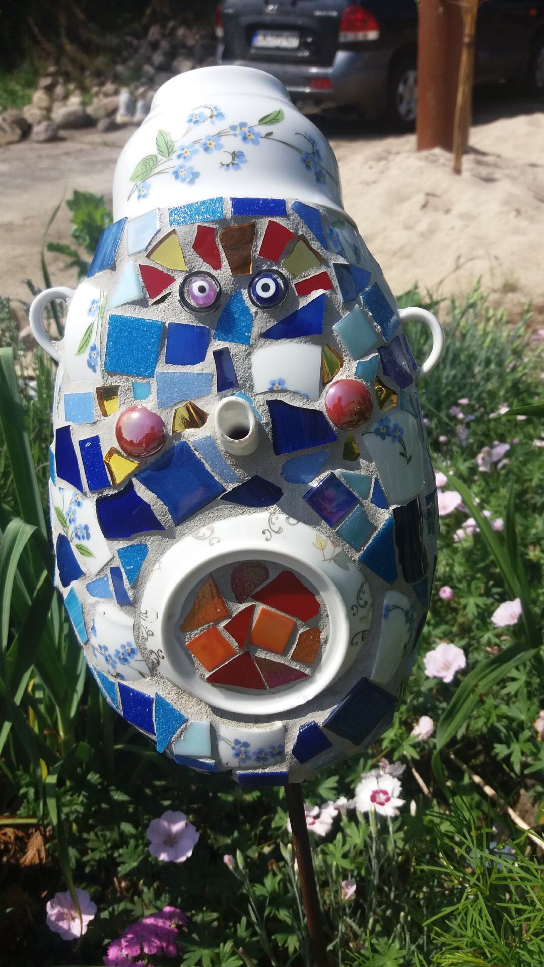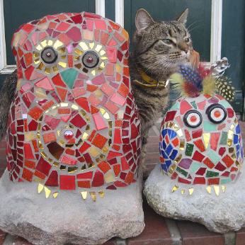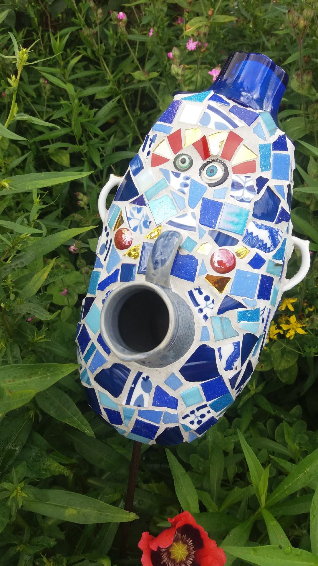 Bei mir können Sie individuelle frostfeste Mosaikobjekte für Haus und Garten käuflich erwerben, einen kleinen Eindruck davon vermitteln die Fotos auf dieser Seite. Die Preise variieren je nach Zeitaufwand und Material. Bei Interesse besuchen Sie mich zu Hause (nach vorheriger telefonischer Terminabsprache).