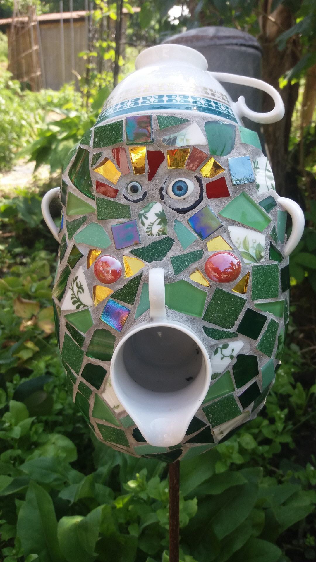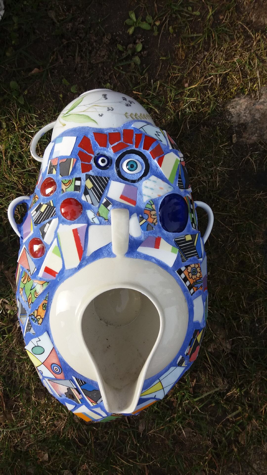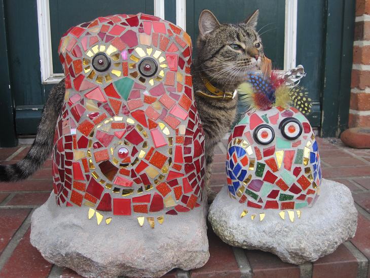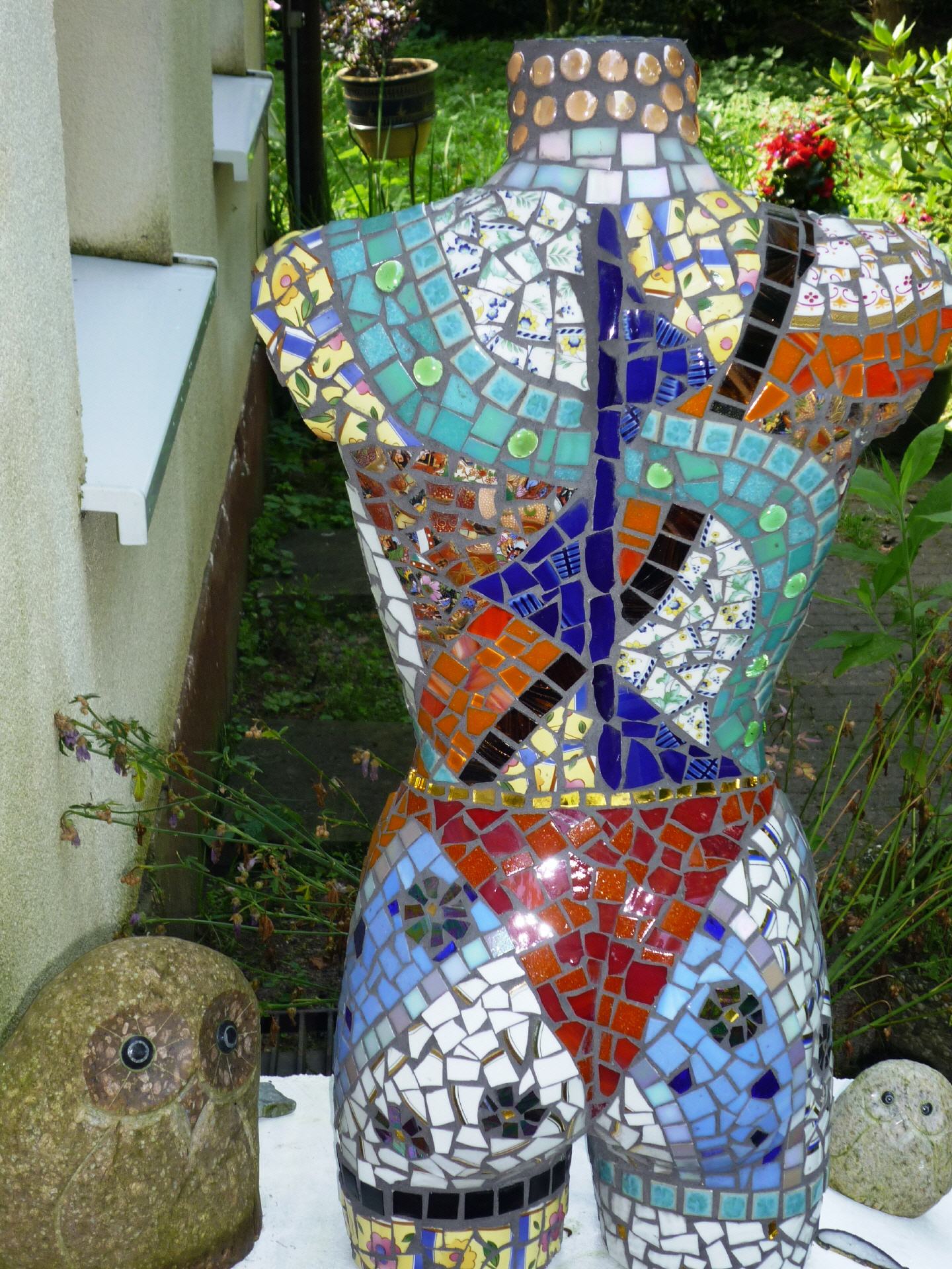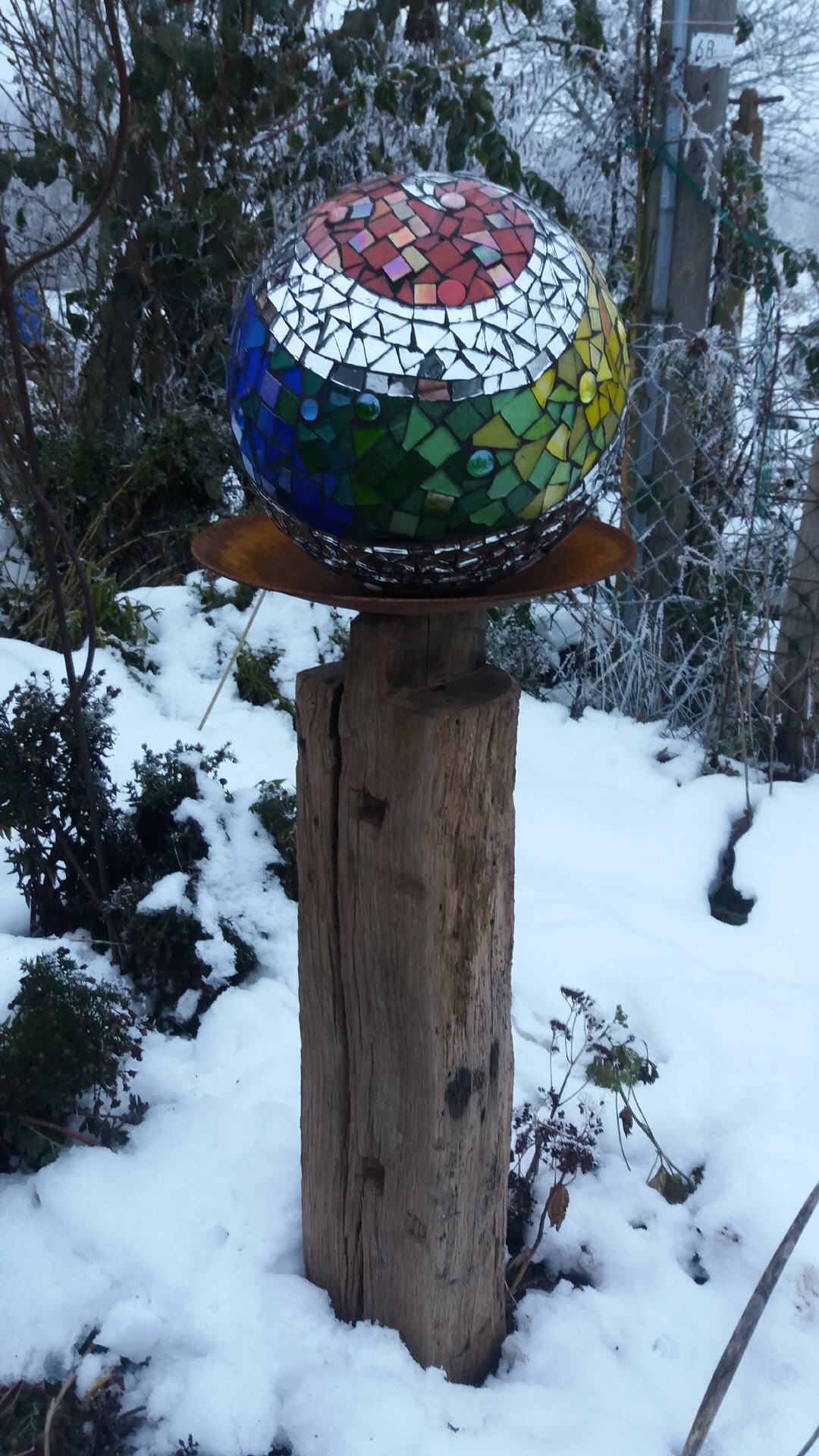 Bei mir können Sie individuelle frostfeste Mosaikobjekte für Haus und Garten käuflich erwerben, einen kleinen Eindruck davon vermitteln die Fotos auf dieser Seite. Die Preise variieren je nach Zeitaufwand und Material. Bei Interesse besuchen Sie mich zu Hause (nach vorheriger telefonischer Terminabsprache).
