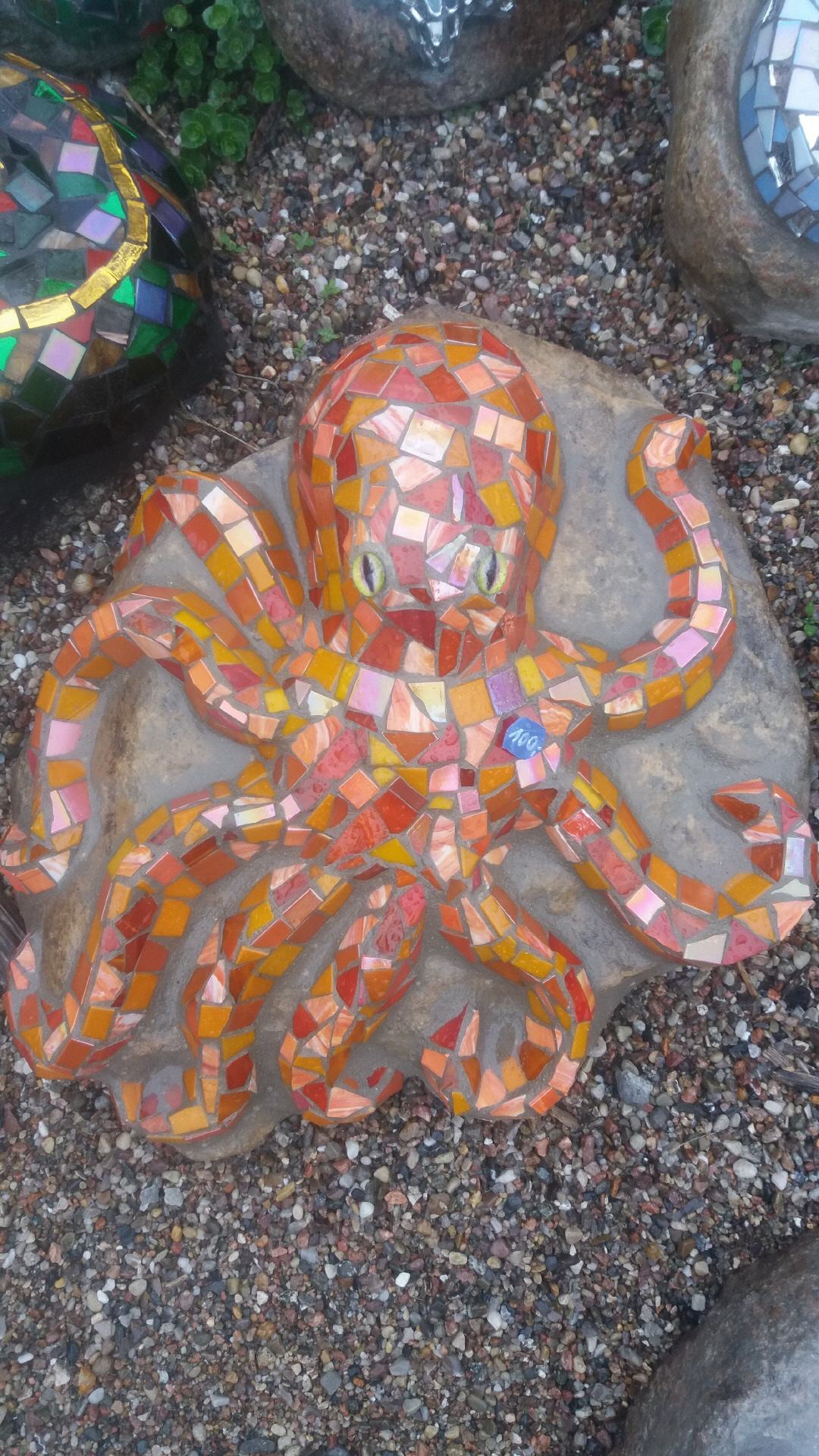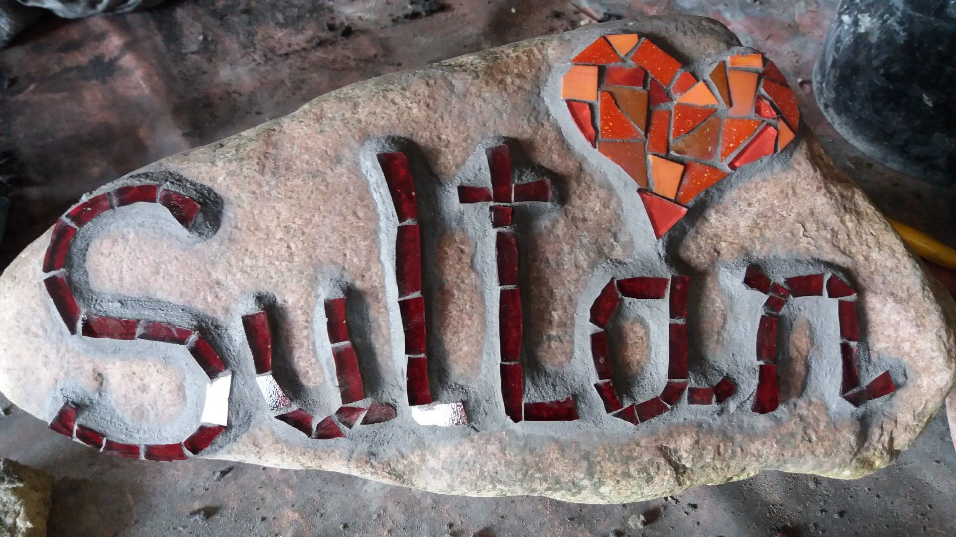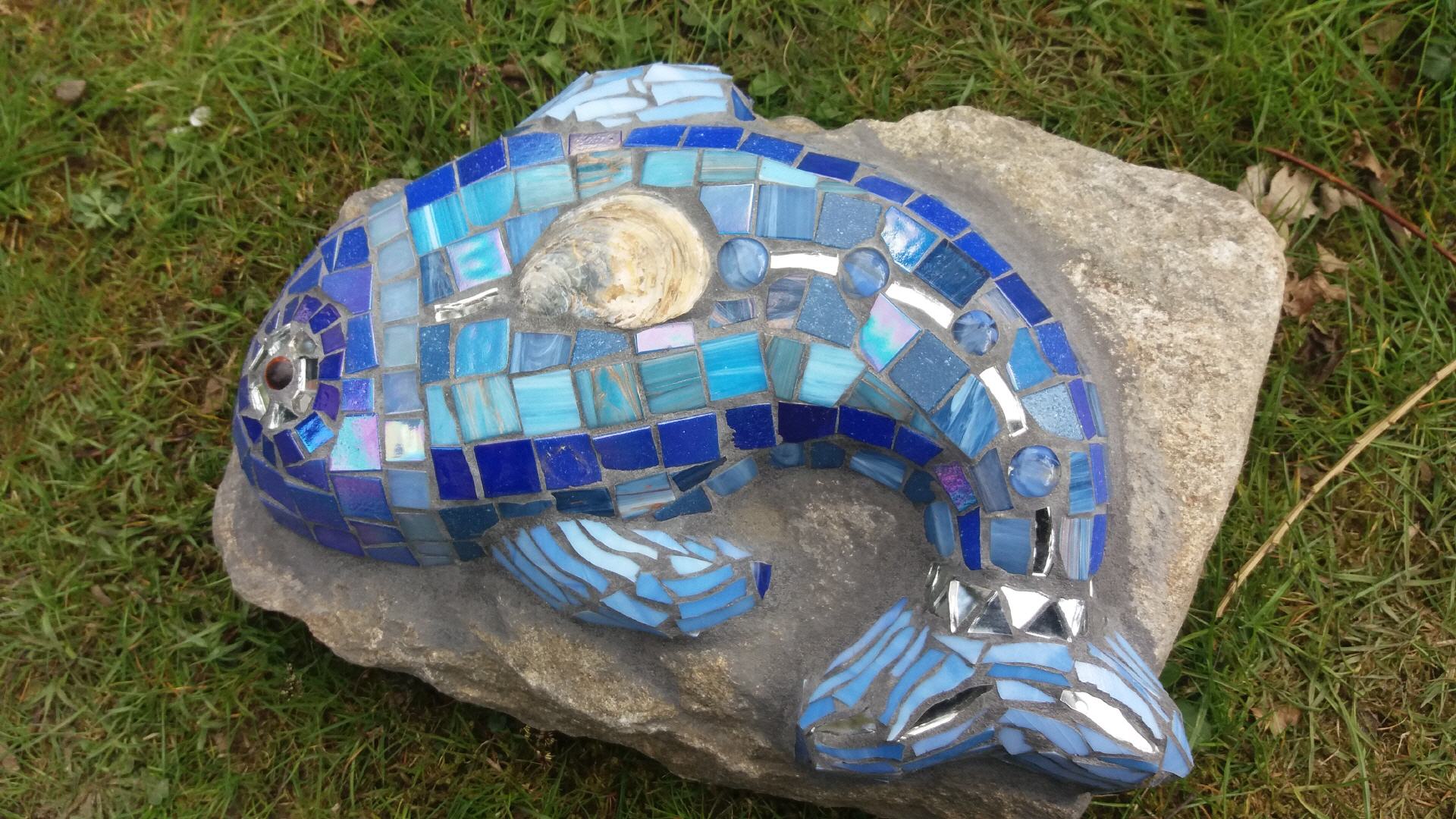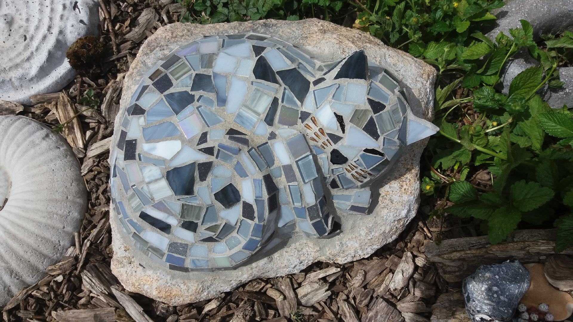 Falls noch ein Platz in meinem Terminkalender vorhanden ist, gestalte ich auch gerne Kunstwerke bei Ihnen zu Hause, z.B. Treppen, Bäder, Wände, große Objekte auf Findlingen usw.